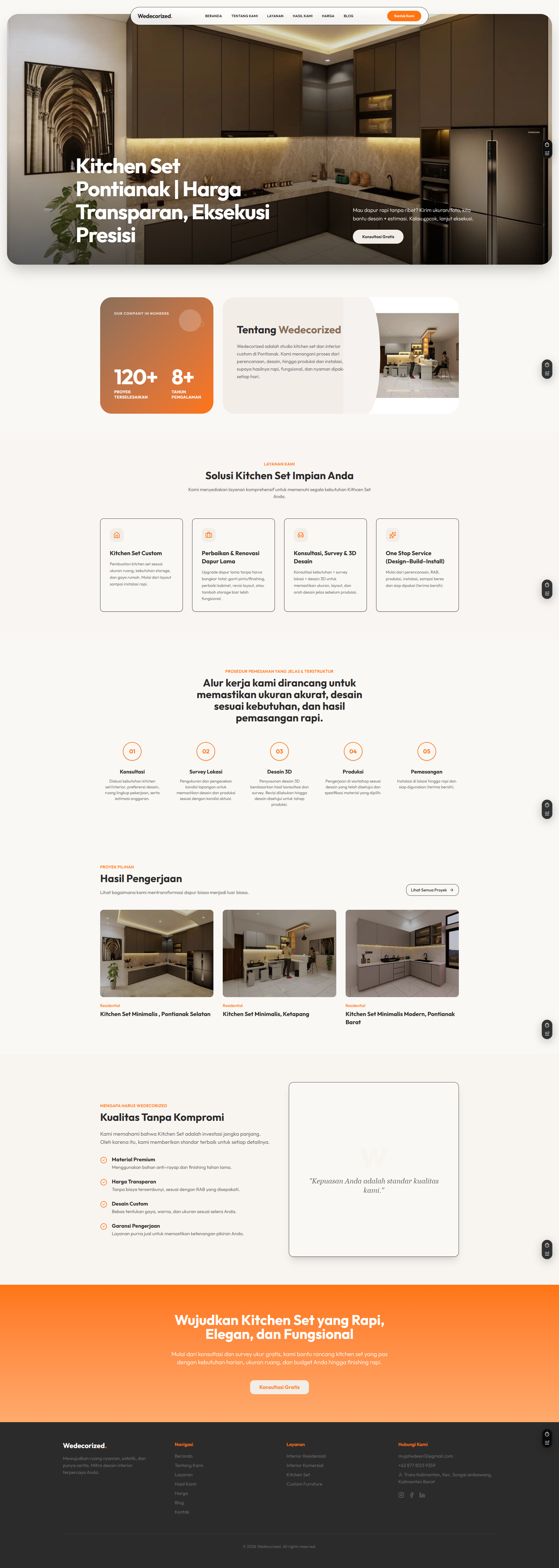 The client needed a professional website to establish their online presence for their interior design and kitchen set business in Pontianak. The existing online visibility was minimal, with no dedicated website to showcase services and past projects to potential customers.